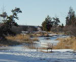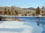 Looking upstream on Pine Creek standing on Harmony footbridge in the Pinedale Town Park, mid-January, 2000. |