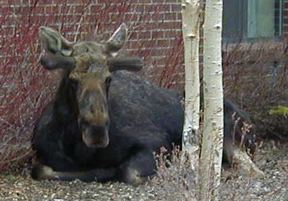 This BIG bull moose made himself comfortable in one of the gardens at the Sublette Center last week. His antlers are just starting to grow, and by fall will be an impressive rack.