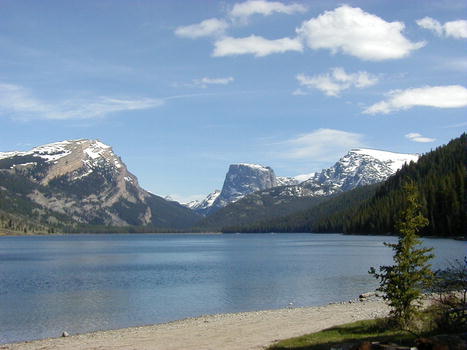 ice. The Skyline Drive road to Elkhart Park and the trailhead is open. We ran into a couple of patches of snow into the campground at the top, but the parking lots are clear. Hikers will hit snow very quickly on the trail though. Be prepared for wet and muddy trail conditions down lower and snow up above 9,000 feet. The road to Big Sandy isn't open all the way up yet. If you're familiar with the road, it's clear to about a mile up past the beaver ponds. The road is washed out just before the summer homes, so they aren't accessible yet. The Forest Service crews hope to have the road repaired as soon as possible. Boulder Lake campground is open and fees are not being charged yet. Fire danger is still low, but if we don't get any rain soon expect that to change. There's lots of wildlife out and they're easy to see if you're not up to a hike and just wanting to get out for a day drive. Even the elk are pretty mellow right now and can be found in the meadows near the road or grazing on the new grass on the mountain sideslopes. Bring your binoculars for a better view. We saw 7 elk, 2 moose and tons of deer right from the car on a drive to Green River Lakes last weekend. Saw 4 more elk and lots of deer and antelope on an evening drive up Skyline Drive to Elkhart Park last week. If you're planning on coming for Rendezvous Days, July 7-9, we recommend making your room reservations right away. We're told rooms are being booked up fast. We are pleased to bring you these photos of the area by free-lance photographer Ben Franklin. Enjoy his scenes of flyfishing the New Fork River in a drift boat, hikers on the Skyline Trail, Fremont Peak, and 7 other great pictures from the area.