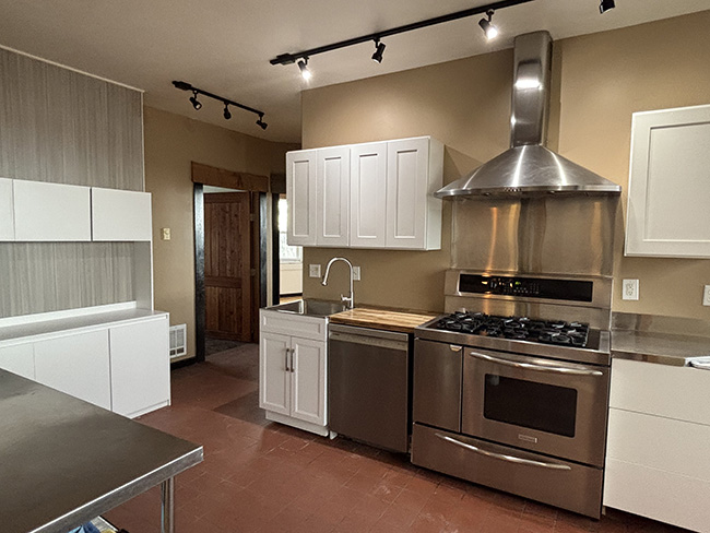 kitchen with an industrial-style stove/oven.