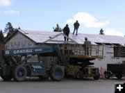 Big surprise this week to see activity going on over at the Pinedale Town Shop. There are people putting up trusses and hustling and bustling all around over there with trucks and lifts and activity. For those who don't appreciate this, the contract to do these buildings was let two years ago. Something happened between the contractor & town, not sure quite what the disagreement was. But anyway work came to a screeching halt with the buildings sitting there as shells with no walls, windows, doors or anything except just the insulation on the outside when things stopped. You know we live in a small town when something like this gets chatter going on in the stores, and probably over coffee at the Wrangler Café, "Hey! Did you see they have started work back on the Town Shop?! No??! Really!!" With the flurry of activity going on there this week, they could make great progress really quickly and maybe they will really get done and be real, usable buildings. That will make the Town happy, and Julie will get her new runs for the animal shelter!