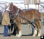 Many people today do not get a chance to see these magnificent working horses and they drew a crowd of spectators just to watch as they were unloaded out of their horse trailers before the pulling event at the Winter Carnival.