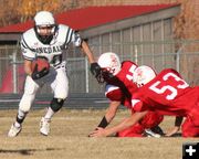 Jason Vickrey (P#5) about to tackle Parker Greenwood (BP#21).