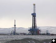Two of many operating drill rigs in the Jonah Field on Saturday, March 11th. The Jonah Field was discovered in 1993 and is one of the largest natural gas fields in North America. The Jonah Field is located approximately 30 miles south of Pinedale and 20 miles