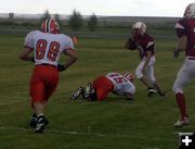 Defensively, I thought the Punchers played very well with the exception of Cokeville’s first play from scrimmage, an 80-yard run. After that, Cokeville could only gain about 100 yards for the rest of the contest. Taylor Moceika, Ben Howard and Chase Raza all registered eight tackles with two of Moceika’s for loss of yards. Nick Mackie ended any Cokeville thoughts of winning with an interception near the end of the day.