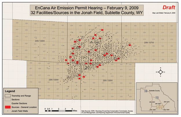 | Pinedale Online > News > February 2009 > DEQ holds Public Hearing on EnCana permit change requests > Drilling Locations |