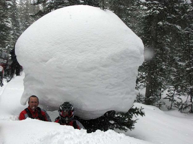 Gary Neely, left, was recognized recently by Polaris as a member of the Polaris Dealer Advisory Council. Gary owns Bucky's Outdoors in Pinedale. This photo was taken in April, 2008 during a snowmobile trip up Horse Creek in the Wyoming Range. Dave Lankford is to the right of Gary. Both men are standing. Photo by Van Huffman. Click on this link for more on the story of this snowmobile trip. |