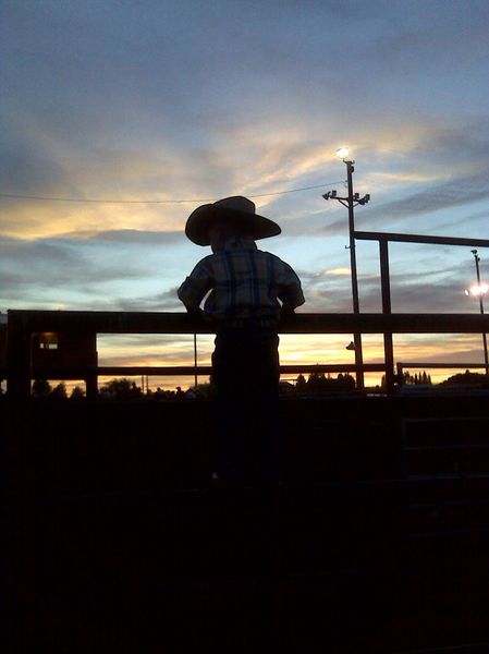 Eian Smith checks out the rough stock behind the chutes and the Friday night rodeo. Photo by Michele Smith.