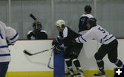 Jackson player reaches around Pinedale Wolves, Eric Smith. Photo by Pam McCulloch.
