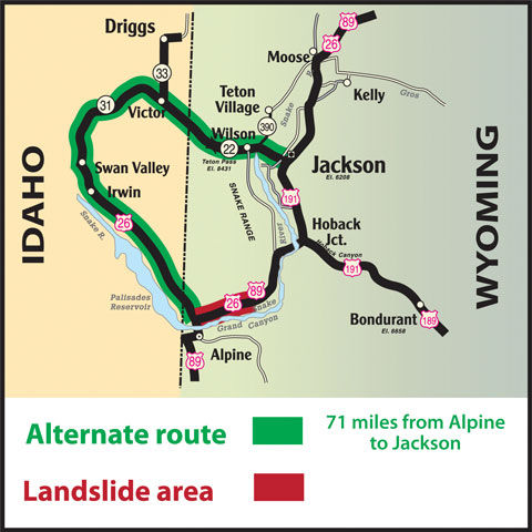 | Pinedale Online > News > May 2011 > Opening of US 26-89 through Snake River Canyon remains unknown > Detour Map |