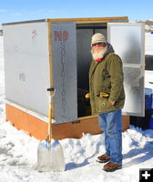 Beginning Saturday morning at 7:00AM, snow machines left their tracks on the surface as they fanned out across the frozen lake in all directions from the lodge. Soon, it looked like communities of brightly colored jelly beans had been scattered across the lake. Echoes of power augers could be head as they drilled surprisingly fast through the two-foot thick ice. Javier Reyes of Green River leaned on his auger and gave a sideways look and said, "No, I ain’t never drilled a hole that wasn’t big enough for the fish."
