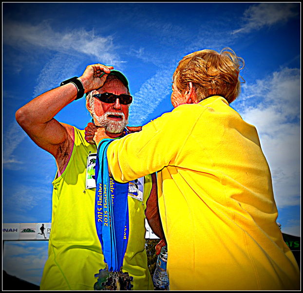 Pinedale Online > News > September 2015 > Pinedale Half-Marathon 2015 > Jill Awards Medal