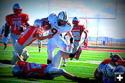 Unfortunately, it was after that exciting score that a series of errors befell Pinedale. A couple more interceptions that looked like the same play that resulted in the first interception; and then at least one fumble…pretty much dug too deep a hole for the team to climb out of. Pinedale still played with great heart and skill, but there wasn’t enough time left on the clock for them to gain a second wind.
