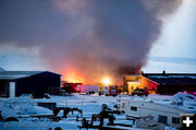 Update Thursday, March 2, 11:00AM: Pinedale Lumber owner Justin Sandner gave an update to say the fire involved their Building #10 on the grounds. That building contained their special order wood, doors, cedar, pine, ultra dry special wood. It also had some fork lifts, roofing under-layments, tar paper, extra truck tire storage, and some petroleum-based products that accounted for the black smoke. No one was hurt. There were only a couple of employees and one customer on the grounds at the time. The cause of the fire is still unknown and under investigation, but it started and became involved very quickly. "It was hot and fast," Sandner said. "Very much a thank you to the Fire Department and everyone who helped. We are open today." He was appreciative of everyone who has already stopped by to express their concern and show support. He added that they didn’t have power this morning, and a local electrician, Dan Liske, came over early and got them back up and going again, so he gave a special ‘thank you’ also to Dan for helping them out. __________________________________