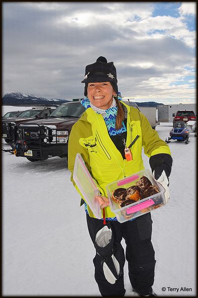 Pinedale Online > News > March 2018 > The Drift 100 > Debbee of SAR with the Treats