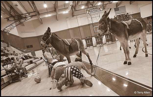 Pinedale Online > News > May 2018 > Donkey Basketball in Pinedale > Passing to the Twins