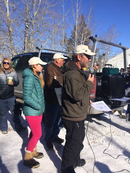 | Pinedale Online > News > March 2019 > Big Fish Winter Derby pays out over $7,000 in prizes > Jason announcing prizes |