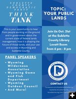 Sublette County Democratic Party Think Tank Oct. 21 (October 12, 2025)