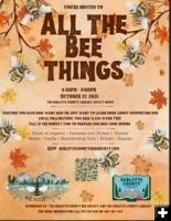 The Sublette County Bee Society invites everyone to a presentation, "All The Bee Things," on Wednesday, October 22 from 6:30PM – 8:00PM in the Lovatt Room of the Pinedale Library. Free class, with a panel of experts. There will be contests and prizes, flower s