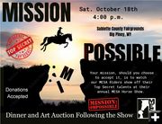 MESA Therapeutic Horsemanship will be hosting their annual Horse Show on Saturday, October 18th at 4:00PM at the Sublette County Fairgrounds. This year’s theme is: Making Missions Possible. Everyone is invited. Dinner and Art Show afterwards. Donations appreci