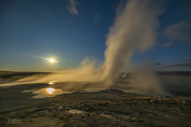 Gallery:Dave Bell:Last Dash To Yellowstone--Closing Weekend 2020:Fountain Geyser And The Full Moon