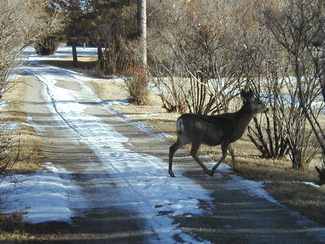 Looking upstream on Pine Creek standing on Harmony footbridge in the Pinedale Town Park, mid-January, 2000. |